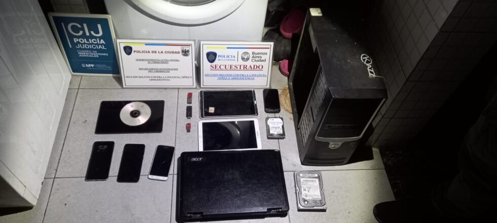 Como resultado de los procedimientos se produjo la detención de 8 personas y el secuestro de 49 equipos y objetos como -CPU, notebooks y tablets-, 198 -discos rígidos, pendrives, CD y DVD- 58 teléfonos celulares, 7 armas de fuego, entre otros materiales.